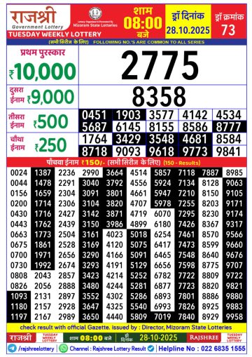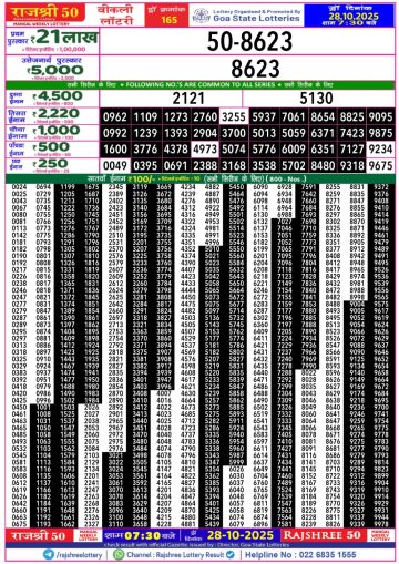 Rajshree 50 Lottery 7.30PM Result 28/10/2025
