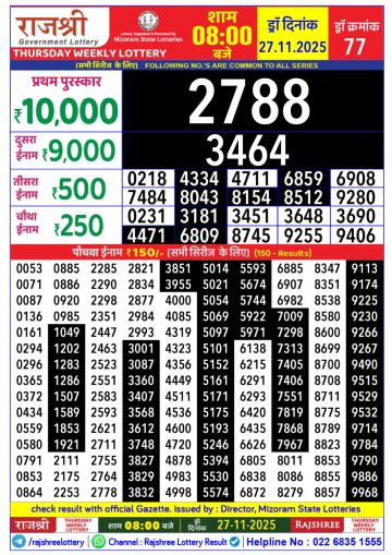 Rajshree 50 Monthly Lottery Result 27/11/2025 Check Now