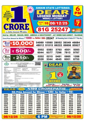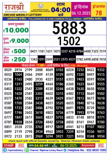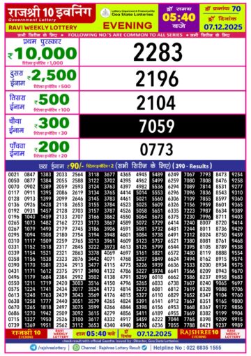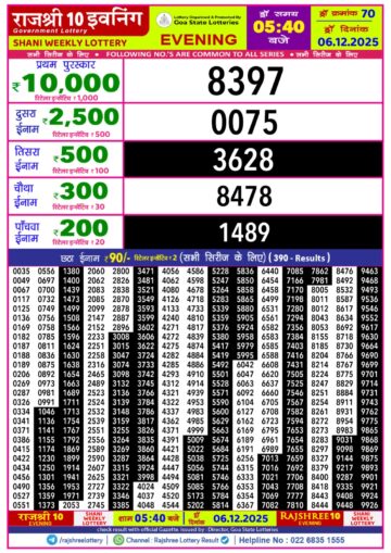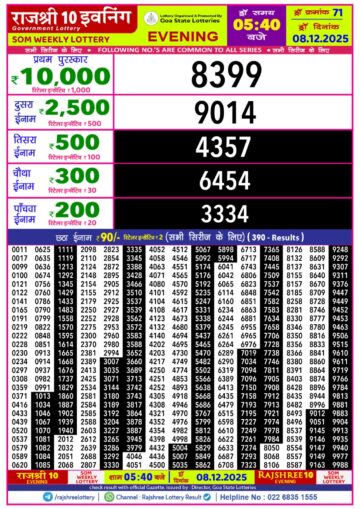 Rajshree 10 Evening 5.40PM Lottery Result 19/11/2025