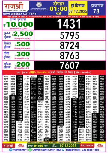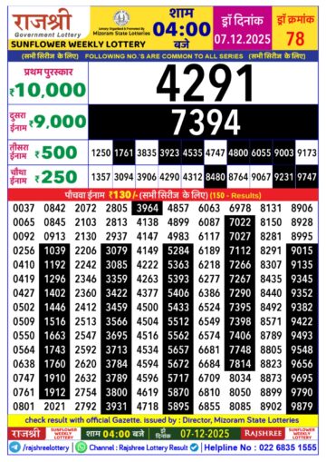 Rajshree 50 Lottery 7.30PM Result 18/11/2025