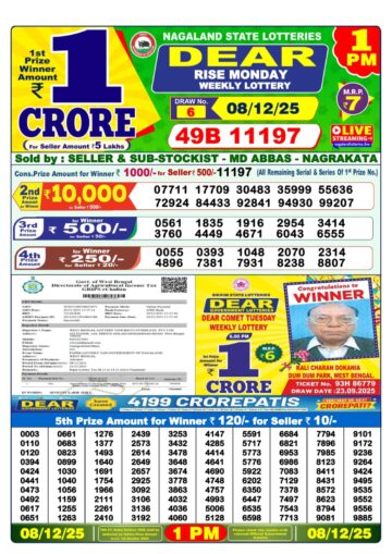 Punjab State 50 Lottery 6PM Result 19/11/2025