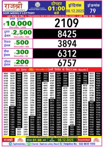 Rajshree Lottery 1PM Result Today 19/11/2025