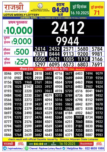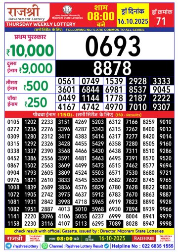 Rajshree 50 Lottery 7.30PM Result 16/10/2025