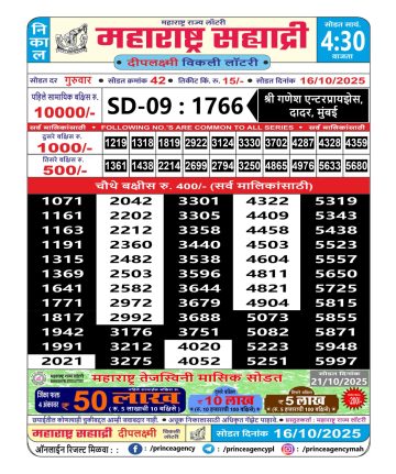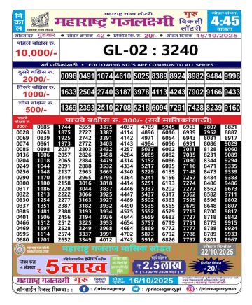Maharashtra Gaj Laxmi Lottery Result 16/10/2025