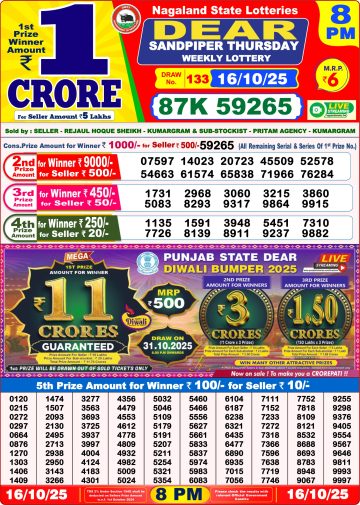 Punjab State 50 Lottery 6PM Result 16/10/2025