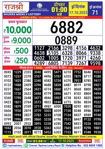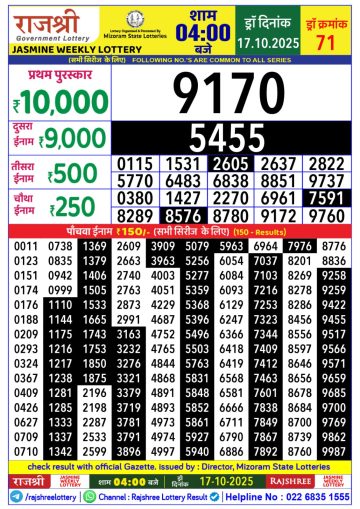Rajshree Lottery 1PM Result Today 17/10/2025