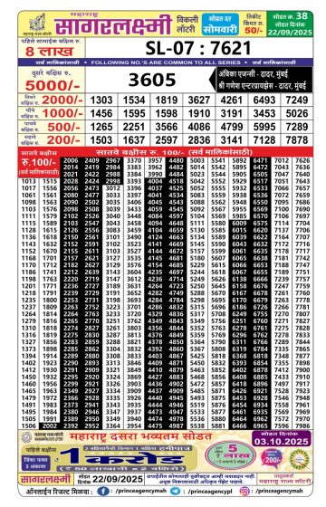 Maharashtra Gaj Laxmi Lottery Result 22/09/2025