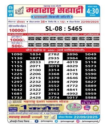 Maharashtra 4.15PM Lottery Result 22/09/2025