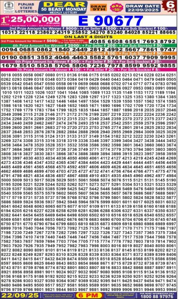 Punjab State 50 Lottery 6PM Result 22/09/2025