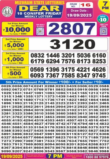 Dear 10 Lottery Result 7PM Today 19/09/2025