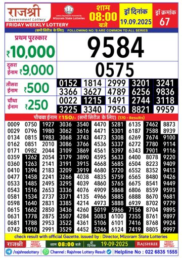 Rajshree 50 Lottery 7.30PM Result 19/09/2025