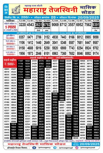 Maharashtra Gaj Laxmi Lottery Result 20/09/2025