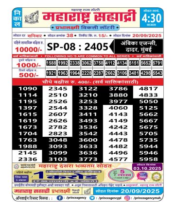 Maharashtra 4.15PM Lottery Result 20/09/2025