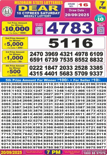 Dear 10 Lottery Result 7PM Today 20/09/2025