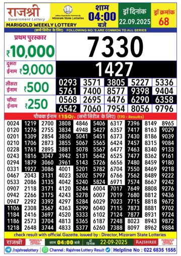 Rajshree 4PM Lottery Result 22/09/2025