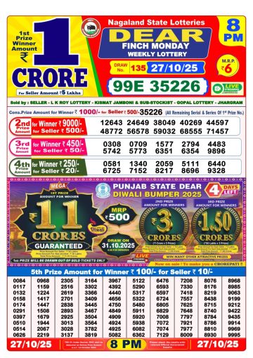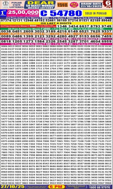 Punjab State 50 Lottery 6PM Result 27/10/2025