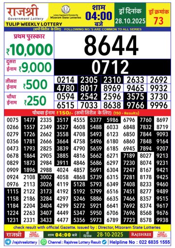 Rajshree Lottery 1PM Result Today 28/10/2025