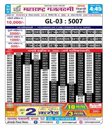 Maharashtra Gaj Laxmi Lottery Result 28/10/2025