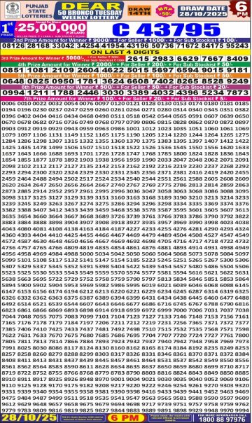 Punjab State 50 Lottery 6PM Result 28/10/2025