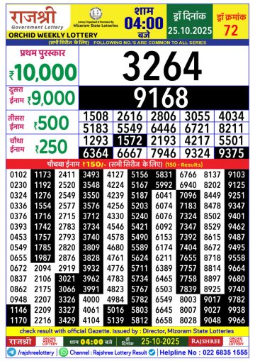 Rajshree Lottery 1PM Result Today 25/10/2025