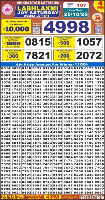 Labh Laxmi 4PM Lottery Result 25/10/2025