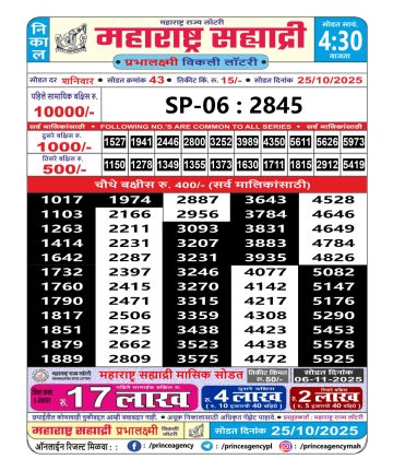 Maharashtra 4.15PM Lottery Result 25/10/2025