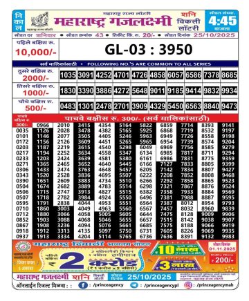Maharashtra Gaj Laxmi Lottery Result 25/10/2025