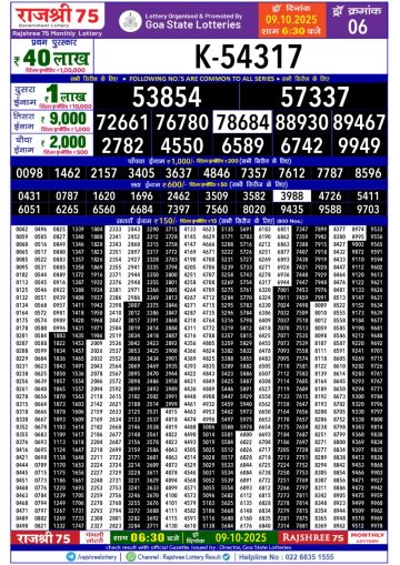 Rajshree 75 Monthly Lottery Result 09/10/2025