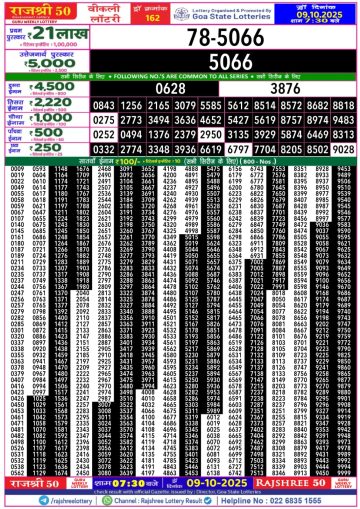 Rajshree 50 Lottery 7.30PM Result 09/10/2025