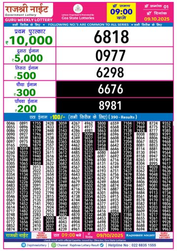 Rajshree Night Lottery 9PM Result 09/10/2025