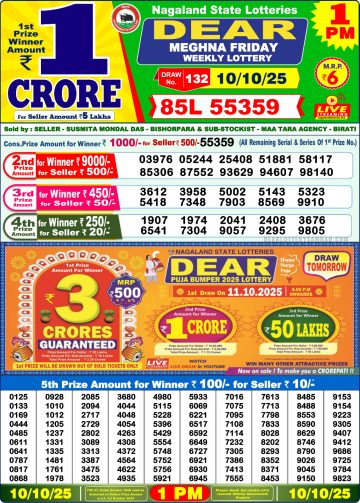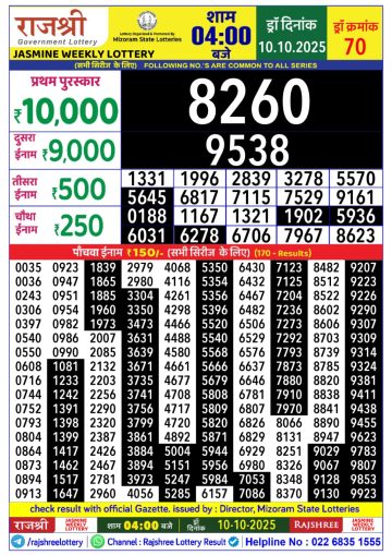 Rajshree Lottery 1PM Result Today 10/10/2025
