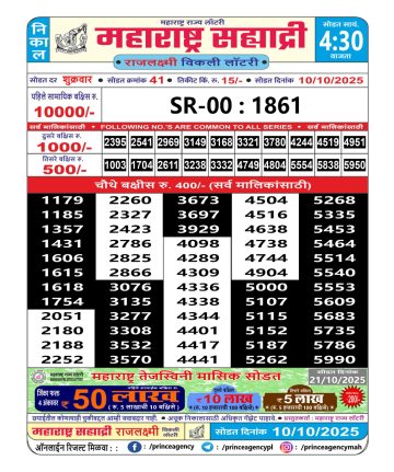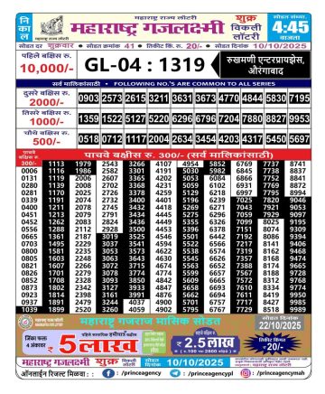 Maharashtra Gaj Laxmi Lottery Result 10/10/2025