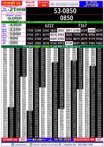 Rajshree 50 Lottery 7.30PM Result 10/10/2025