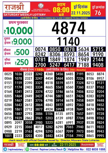 Rajshree 50 Lottery 7.30PM Result 22/11/2025