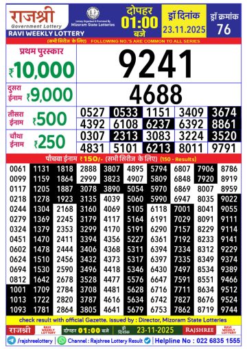 Rajshree Lottery 1PM Result Today 23/11/2025