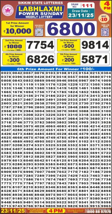 Labh Laxmi 4PM Lottery Result 23/11/2025