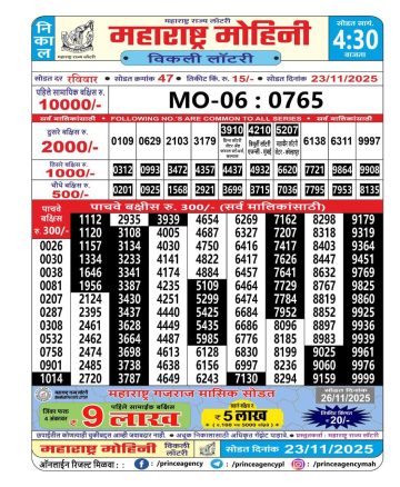 Mahrashtra Mohini Lottery Result 23/11/2025