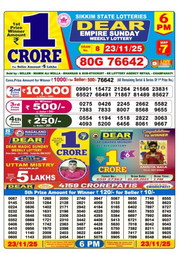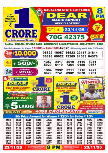 Punjab State 50 Lottery 6PM Result 23/11/2025