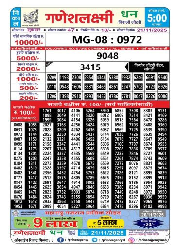 Maharashtra Ganesh Laxmi Lottery Result 21/11/2025
