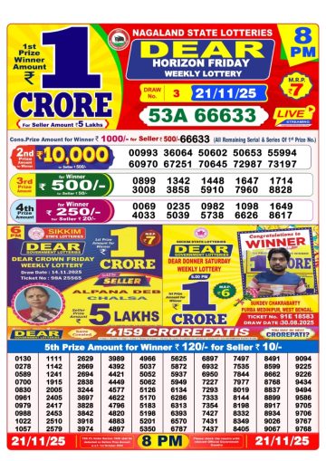 Punjab State 50 Lottery 6PM Result 21/11/2025