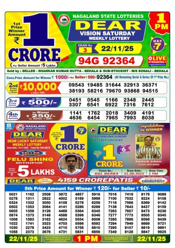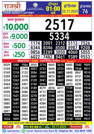 Rajshree Lottery 1PM Result Today 22/11/2025