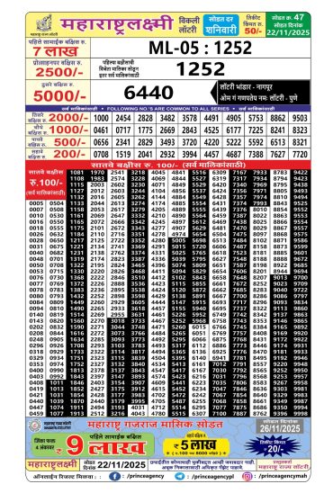 Maharashtra Gaj Laxmi Lottery Result 22/11/2025