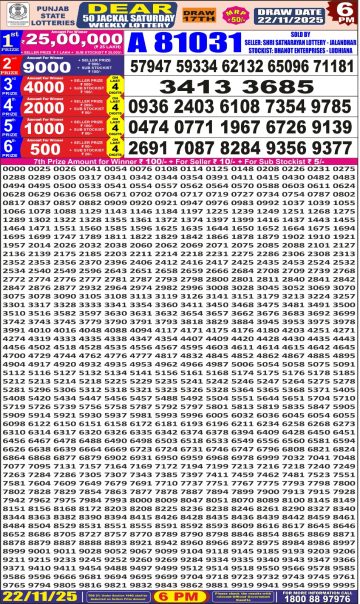 Punjab State 50 Lottery 6PM Result 22/11/2025