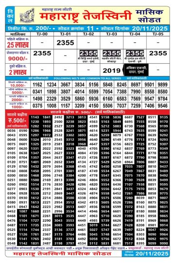 Maharashtra Tejaswini Monthly Result 20/11/2025