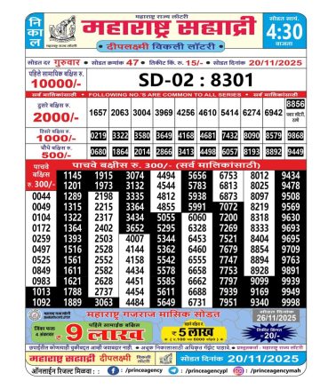 Mahrashtra Sahyadari Lottery Result 20/11/2025