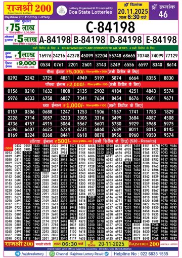Rajshree 200 Monthly Lottery Result 20/11/2025 Check Here