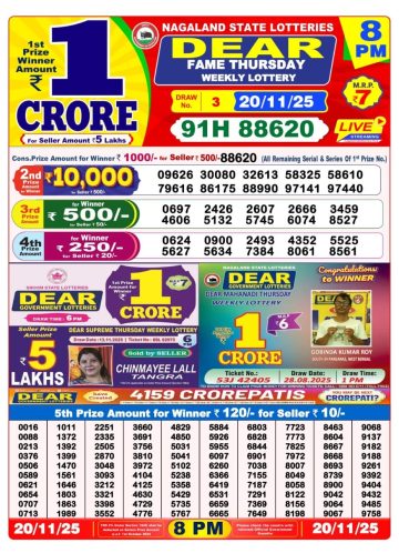 Dear Evening 8pm Lottery Result 20/11/2025