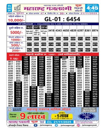 Maharashtra Gaj Laxmi Lottery Result 21/11/2025