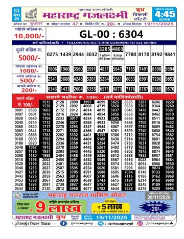Maharashtra Gaj Laxmi Lottery Result 19/11/2025