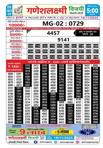 Maharashtra Ganesh Laxmi Lottery Result 19/11/2025